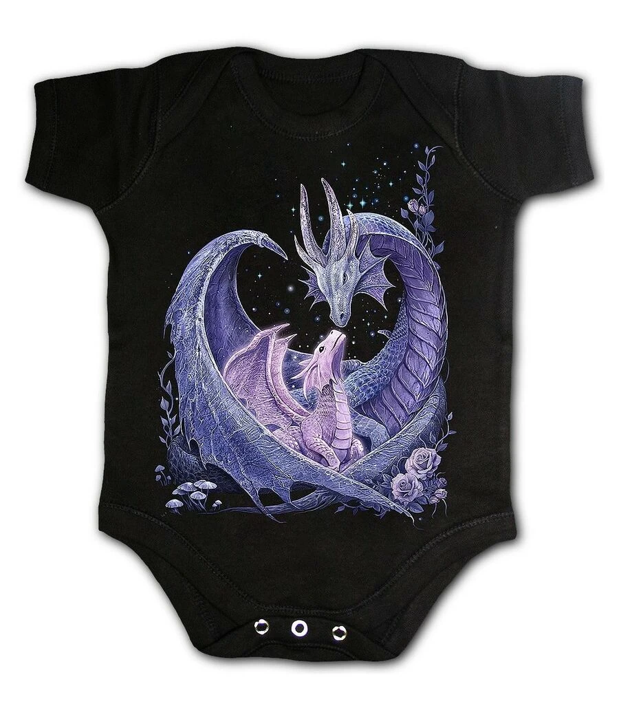 L’aile protectrice d’un dragon majestueux berce sa progéniture, formant la forme d’un coeur autour d’eux deux.