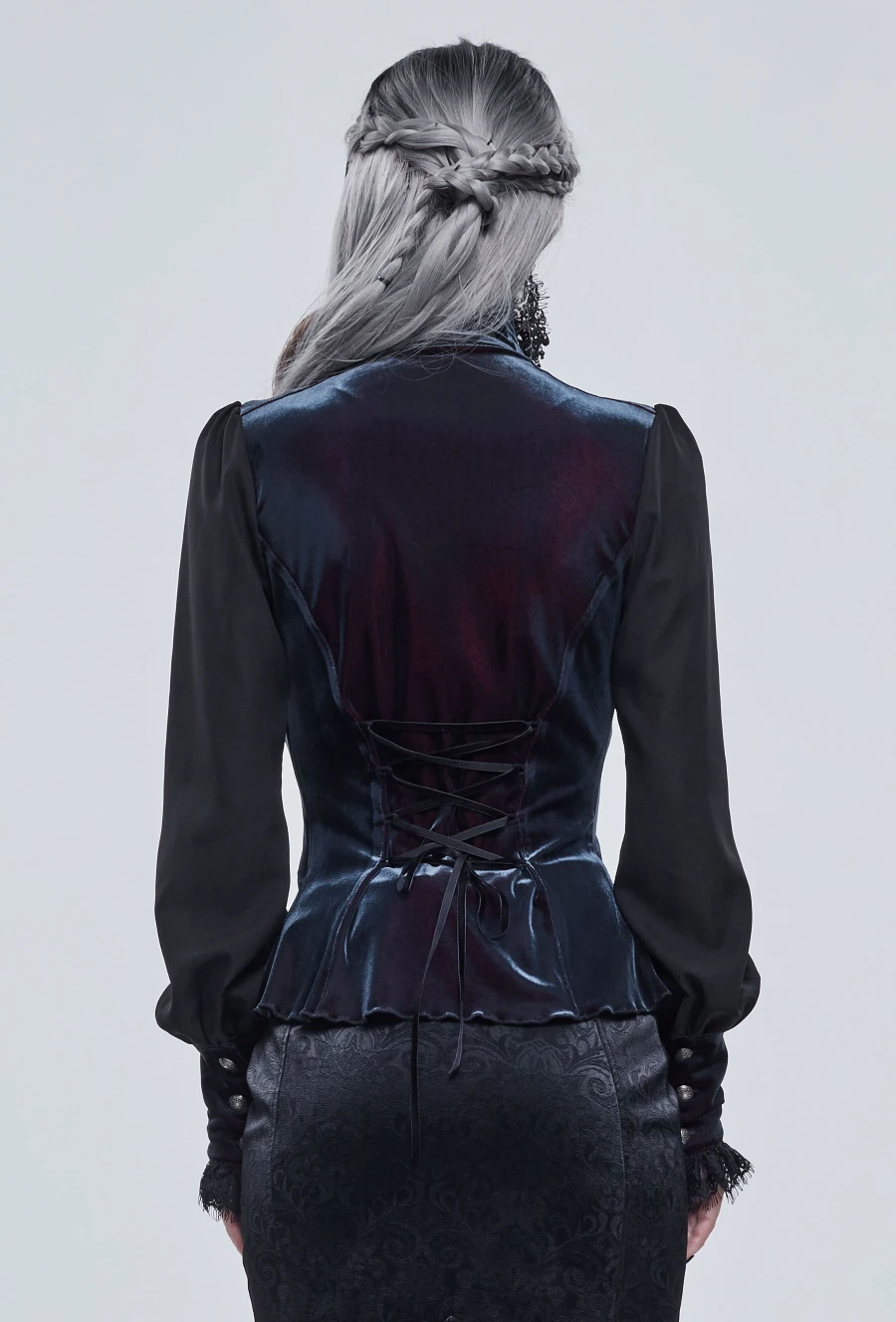 Les manches sont en coton et se terminent par un empiècement de velours bordé de dentelle