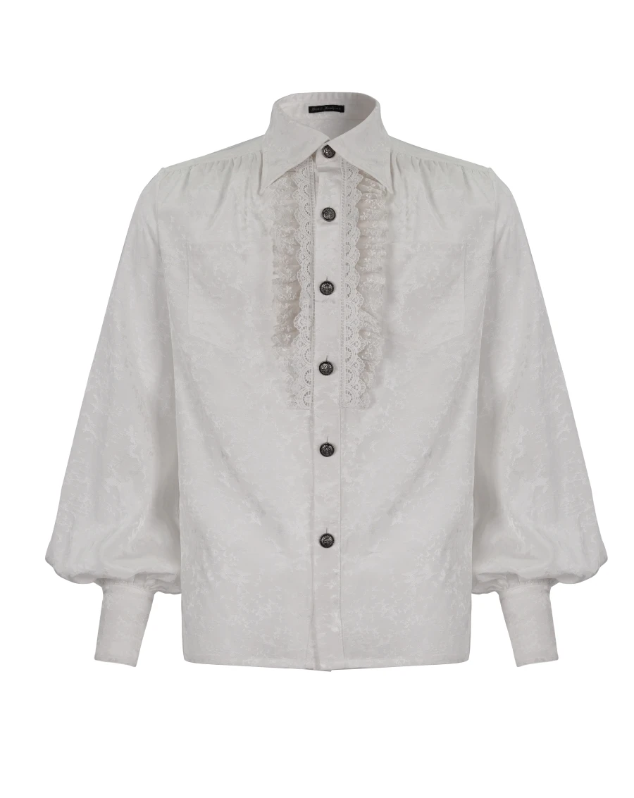 Très belle chemise Devil Fashion taillée dans un tissu brocarde blanc de grande qualité