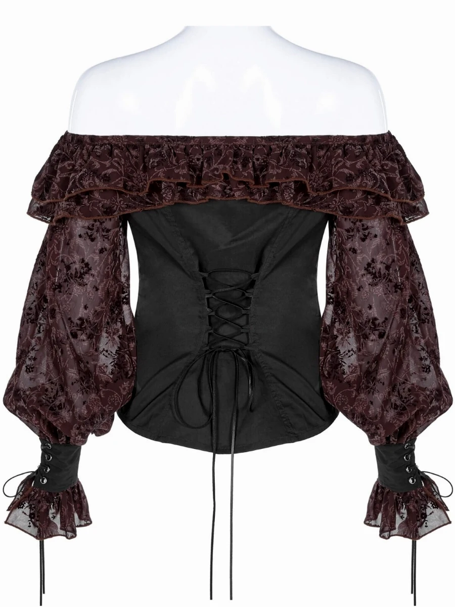 Ce superbe chemisier de type Bardot signé Punk Rave est composé de deux matières