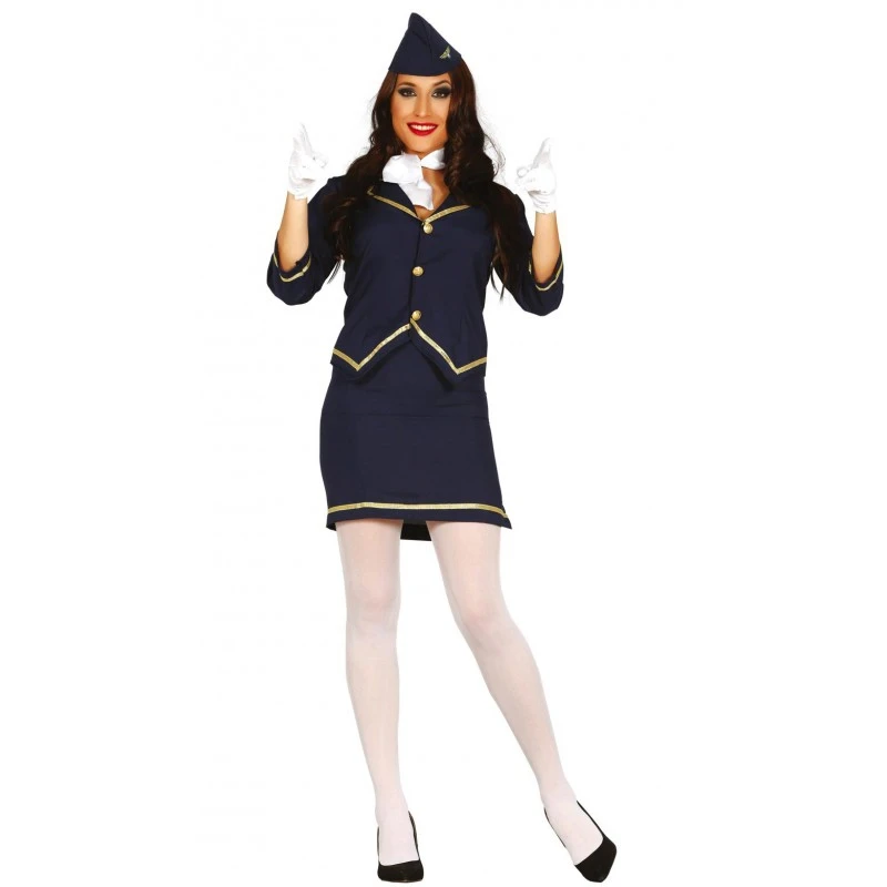 Ce modèle d’hôtesse de l’air est parfait pour une soirée déguisée sur le thème des métiers. Sur ce même thème, nous proposons de nombreuses idées de déguisements comme policier, pompier, astronaute, cuisinier, marin ou encore militaire. Tous ces modèles existent pour les hommes et pour les femmes.