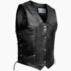 Ce gilet sans manches look biker est fabriqué dans un cuir de vachette de haute qualité