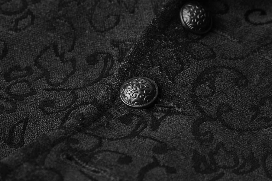 Ce gilet signé Punk Rave est fabriqué dans un luxueux tissu jacquard aux motifs baroques