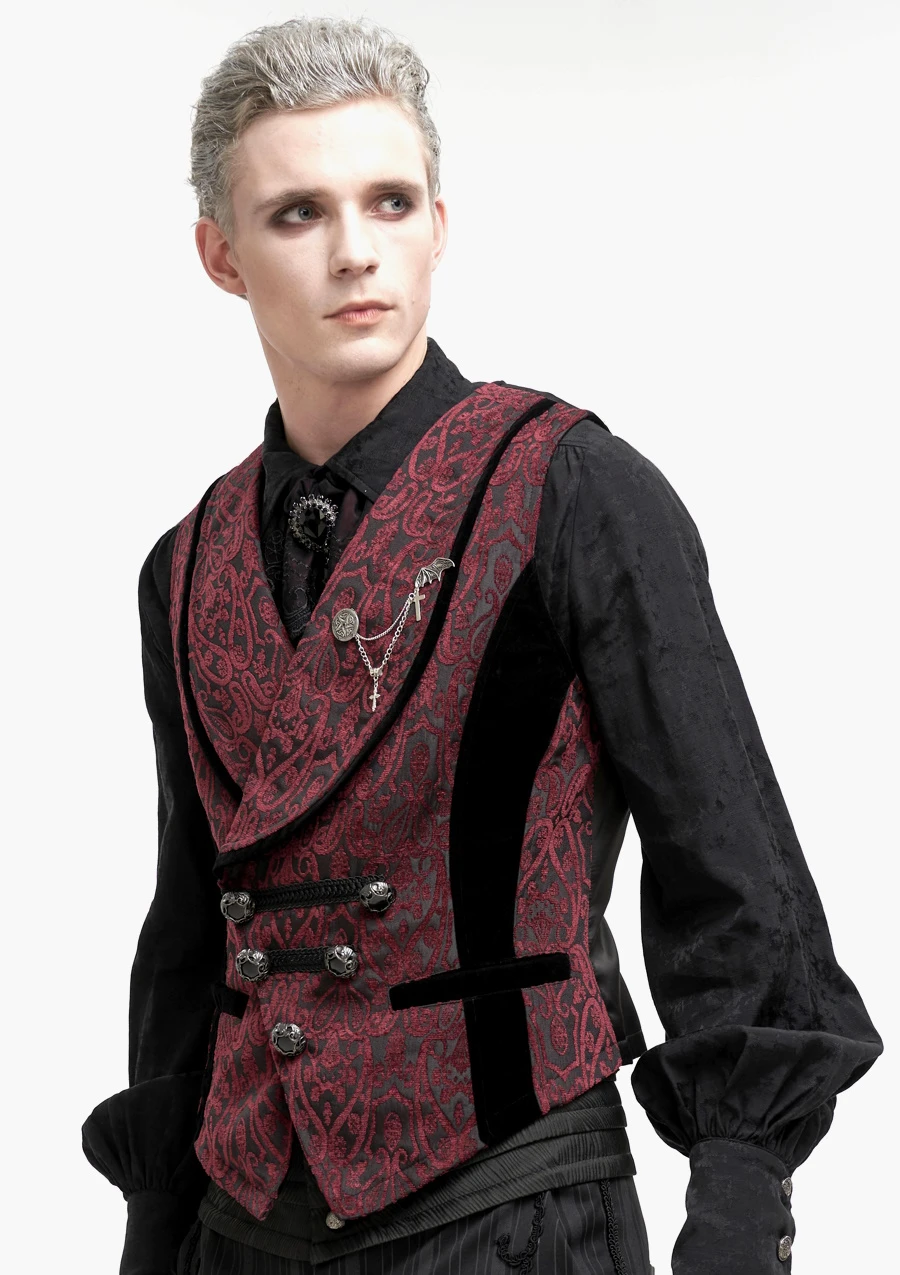Ce gilet sans manches signé Devil Fashion est fabriqué dans un somptueux tissu jacquard rouge