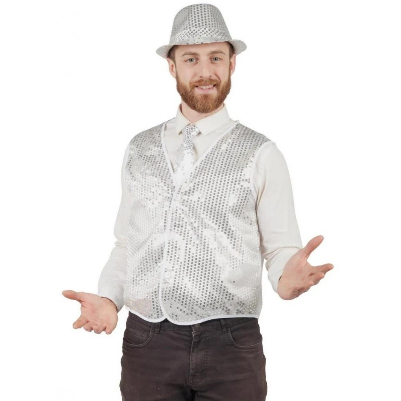 Grâce à ce gilet disco argent et quelques accessoires, vous ressemblerez parfaitement à quelqu’un des années 70. Vous trouverez de nombreux accessoires complémentaires dans notre rubrique dédiée au disco. Il y a tout ce qu’il faut pour se déguiser sur le thème des années 70 !