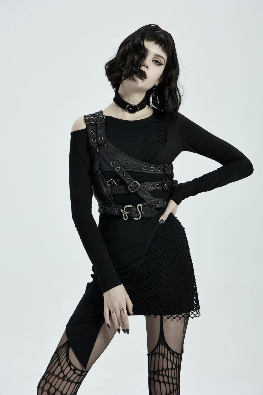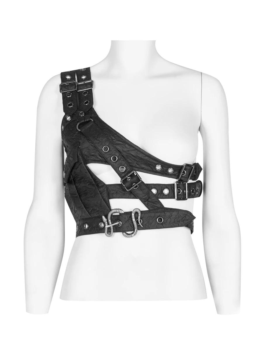 Ce harnais Punk Rave est fabriqué dans un beau tissu gaufré légèrement satiné