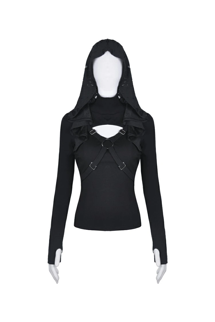 Ce haut manches longues signé Dark In Love possède une impressionnante capuche surdimensionnée retombant sur les épaules