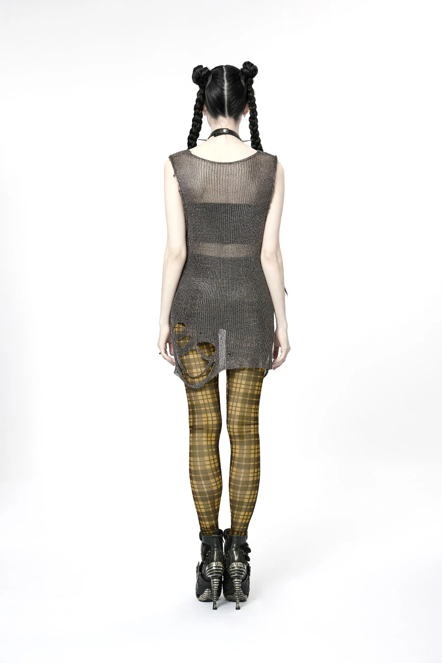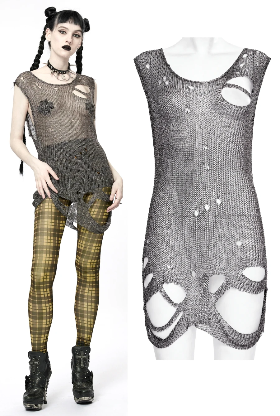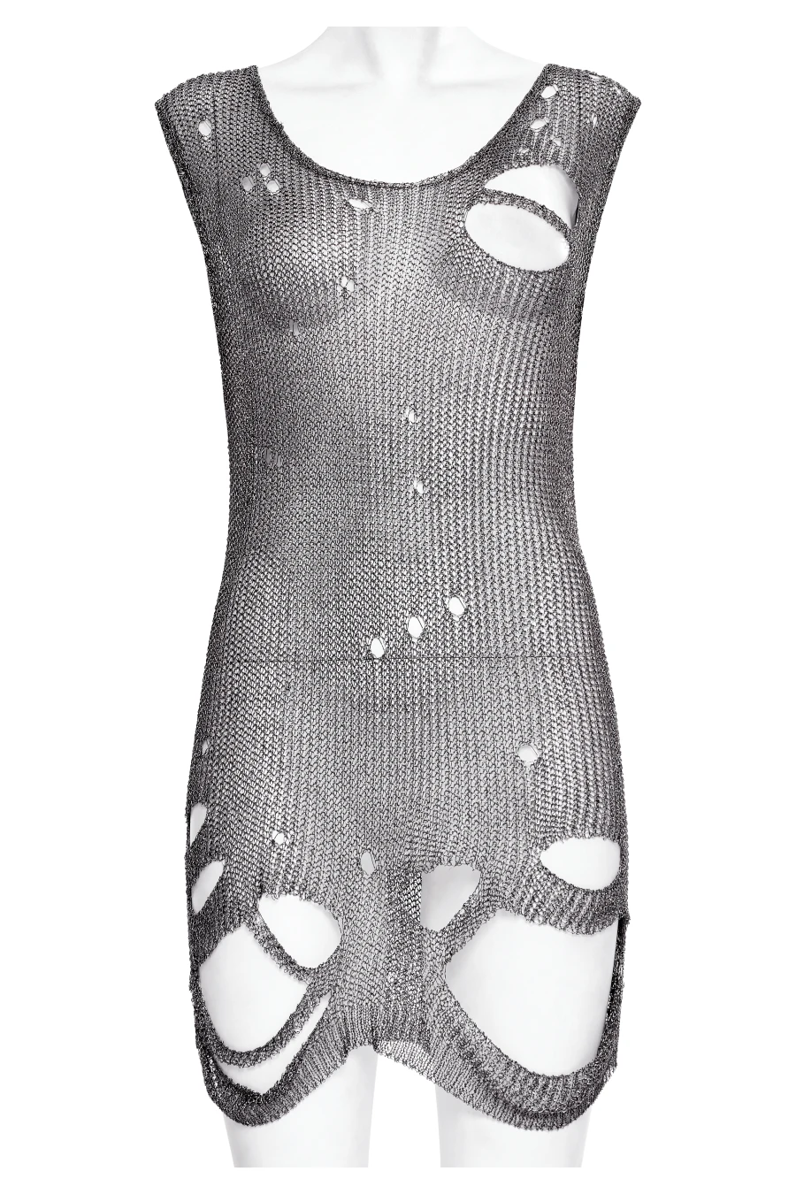 Tissu imitation métal ! En effet ce haut post-apocalypse argentéPunk Rave est fabriqué dans un tissu très original imitation fil en métal, l’aspect est bluffant !
