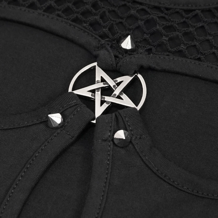 Ce haut gothique en coton léger possède des manches en tissu résille grosses mailles (tissu filet)