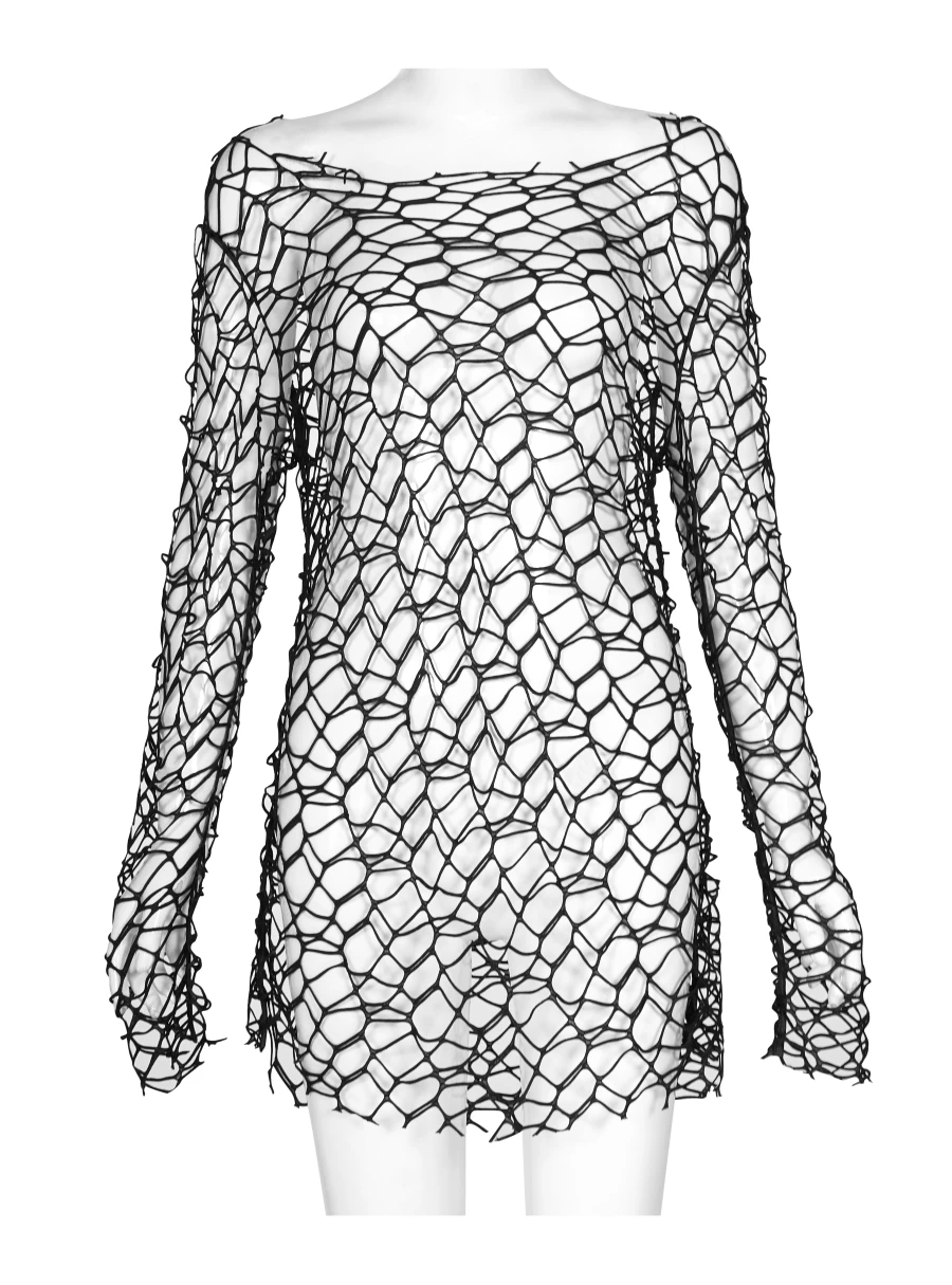 Haut gothique en tissu filet mesh à grosses mailles par Punk Rave