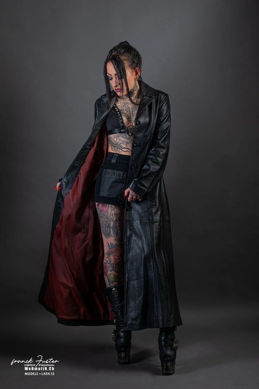 Il possède une coupe cintrée sur le haut et évasée à la taille dans le pur style goth