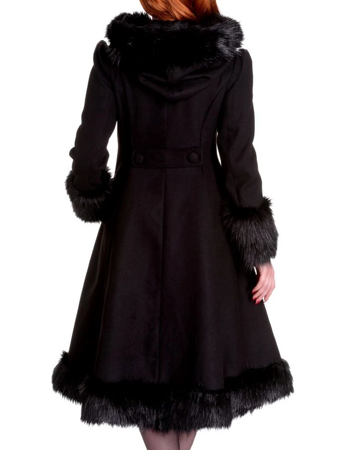 Long manteau gothique noir à capuche en laine synthétique de très belle qualité par Hell Bunny