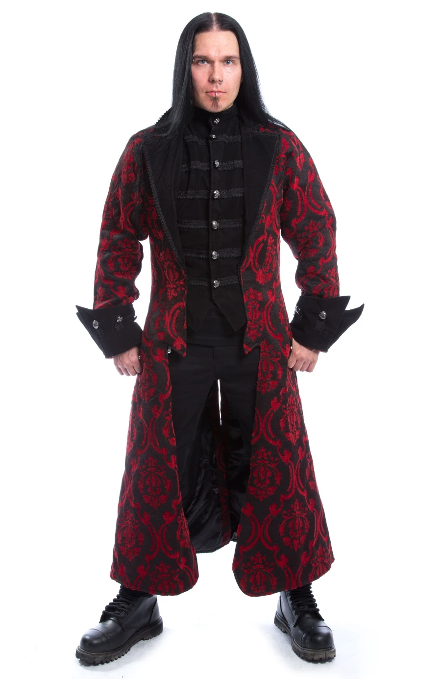 Baroque, Victorien, Gothique, Pirate…quelque soit votre style le manteau Quentin en brocarde rouge conviendra parfaitement pour un total look hors du commun