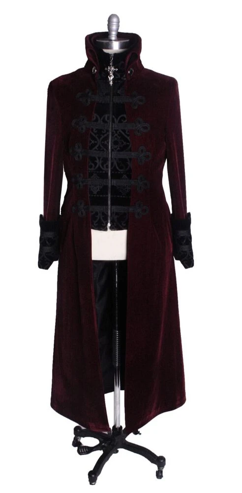 TrÚs belle redingote pour un style victorien hors du commun, le tissu velours de trÚs belle qualité est orné de nombreuses broderies.