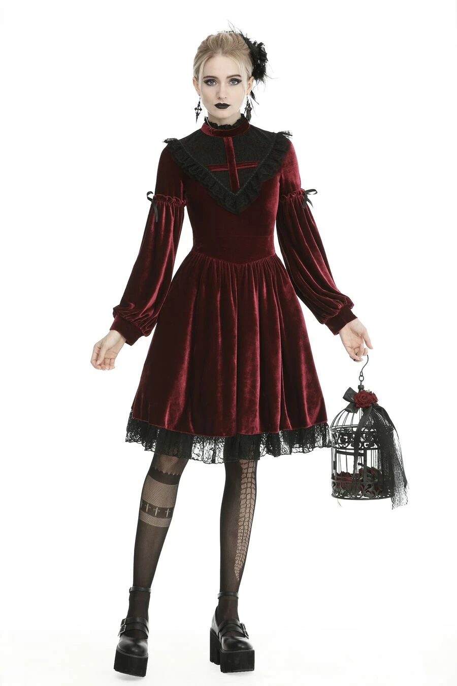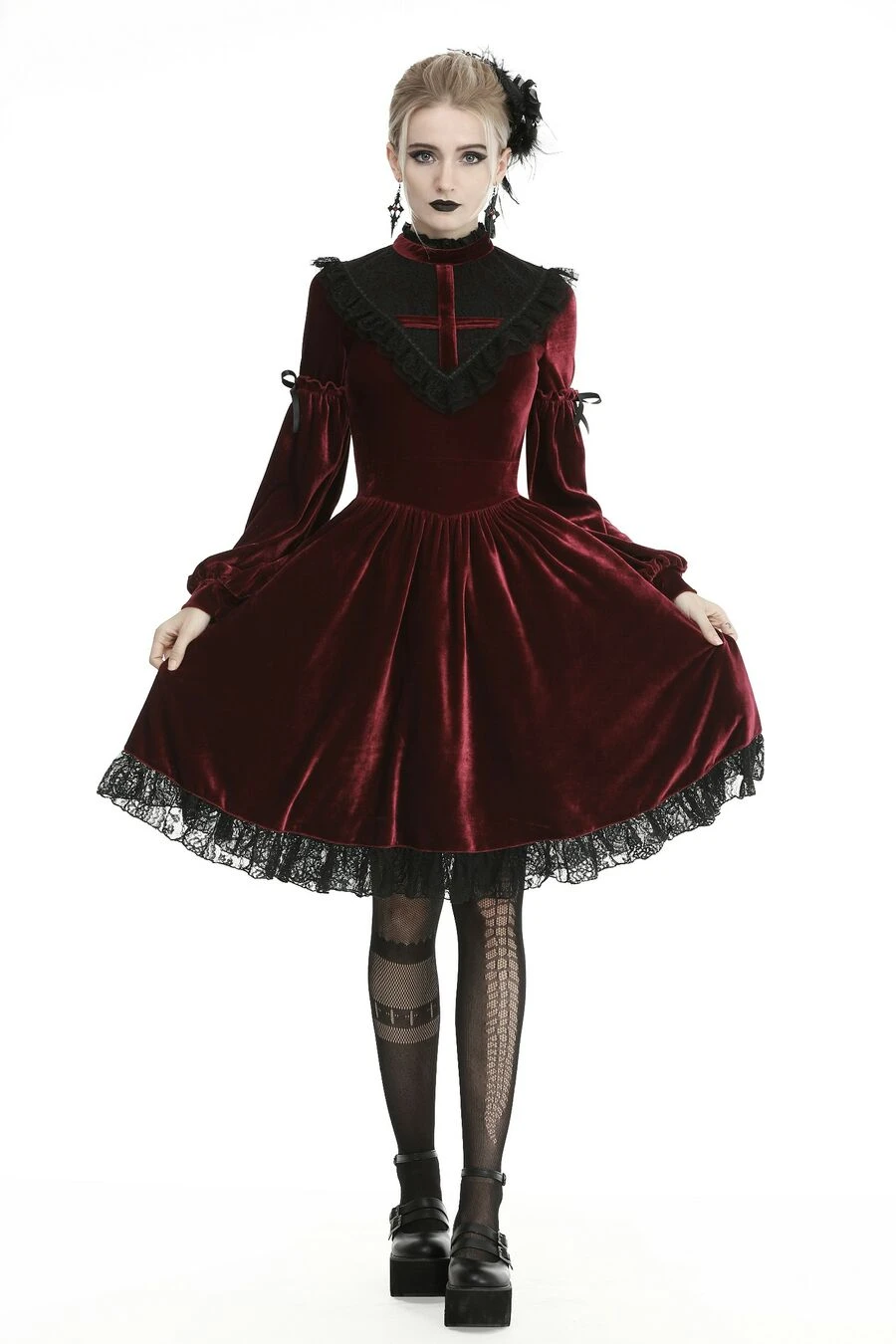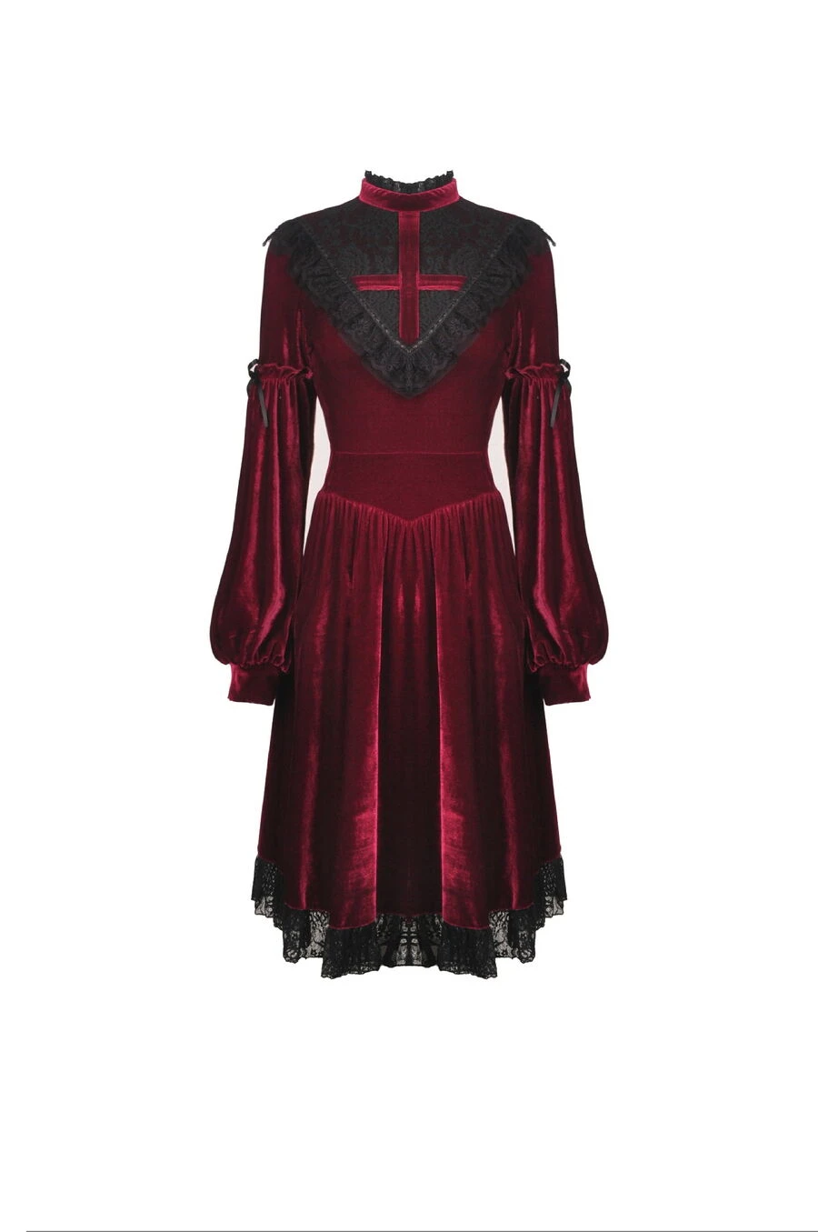 Elle est agrémentée d’une partie haute en V en fine dentelle noire avec une grande croix gothique en velours