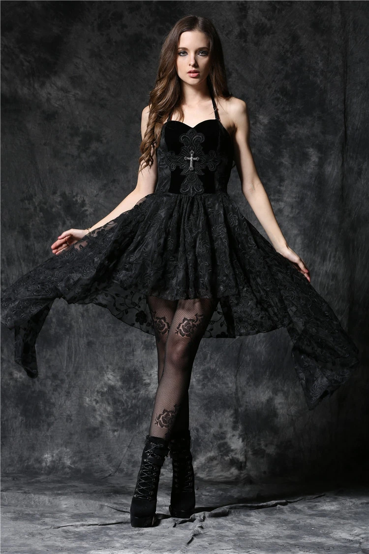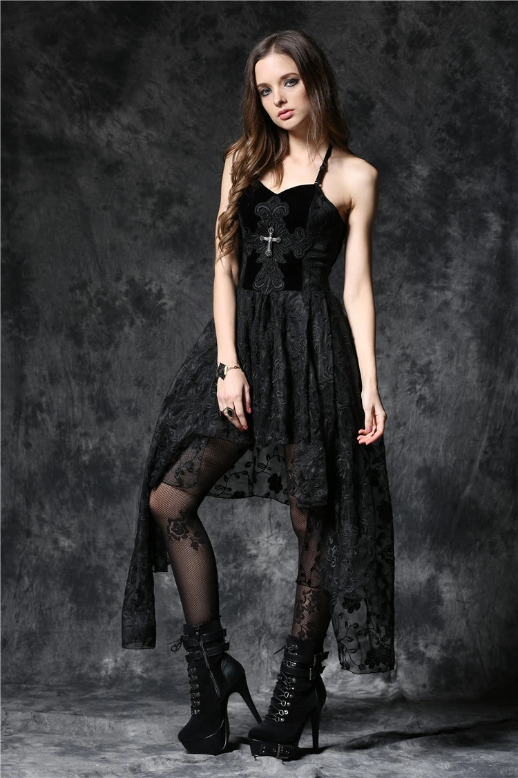 Belle robe/bustier gothique entièrement recouverte de tulle très fin à la décoration florale, coupe asymétrique plus longue sur les côtés lui donnant un style bien particulier.