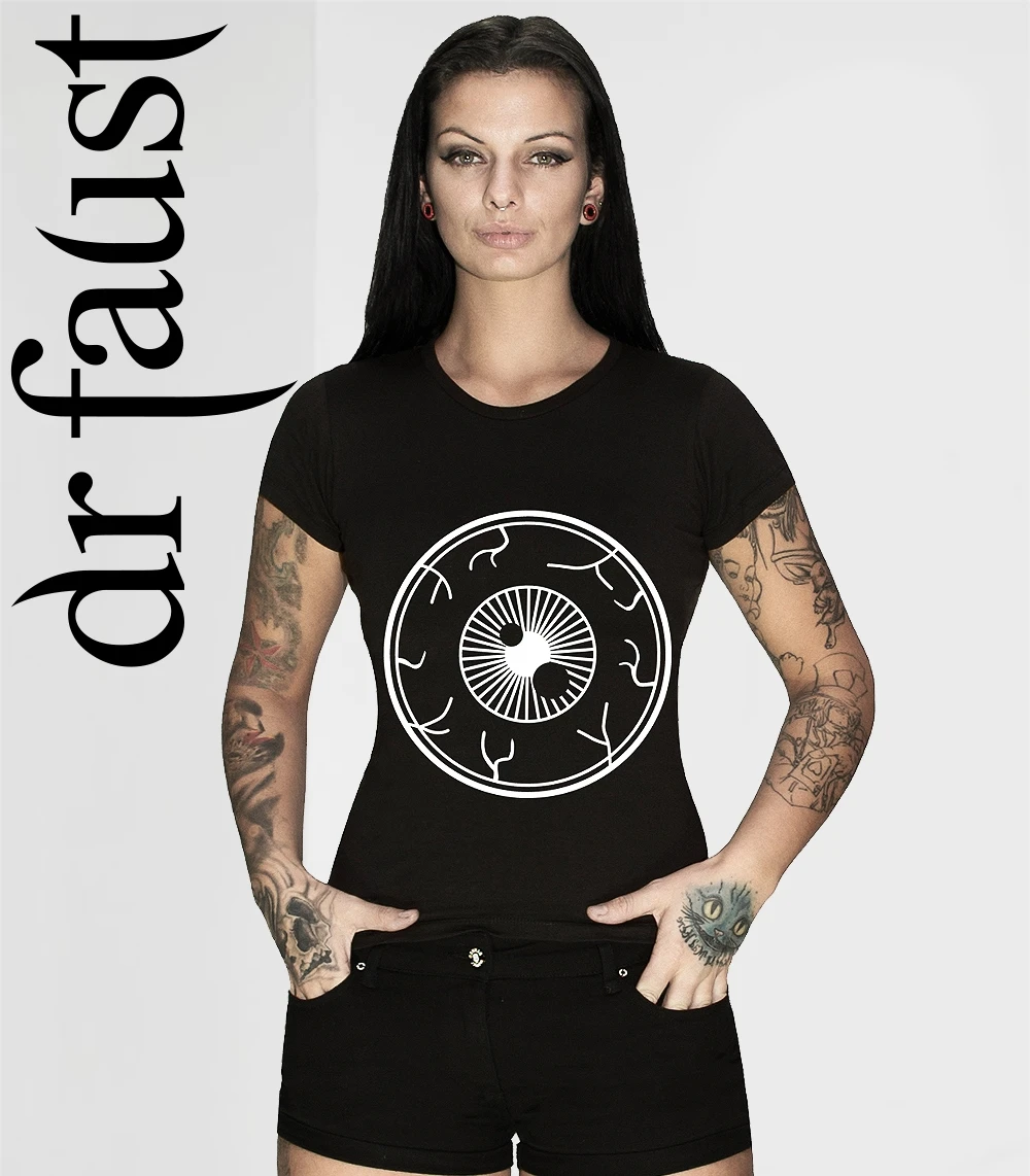 T-shirt noir femme manches courtes avec un beau dessin d’oil esprit ésotérique, optez pour un style dark décalé