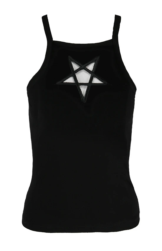Classique et sobre ce top noir possède tout de même une touche très particulière avec son grand pentagramme brodé