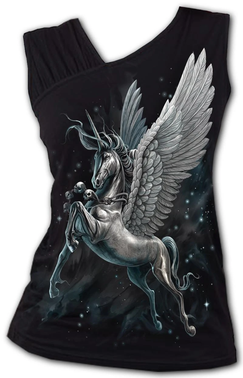 La forme d’une licorne ailée mystique galopant au-delà du plan astral connu et jusqu’à l’au-delà parsemé d’étoiles