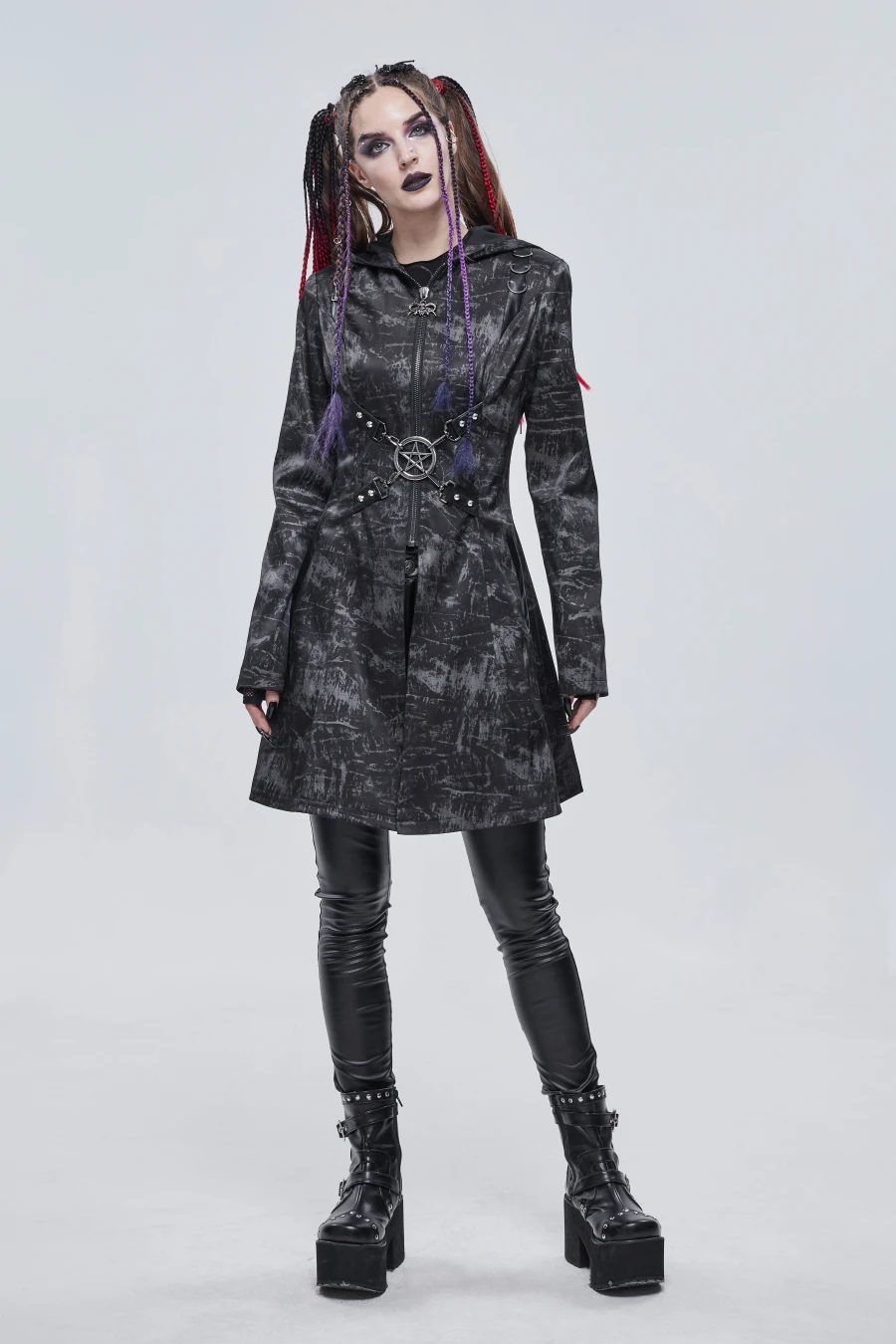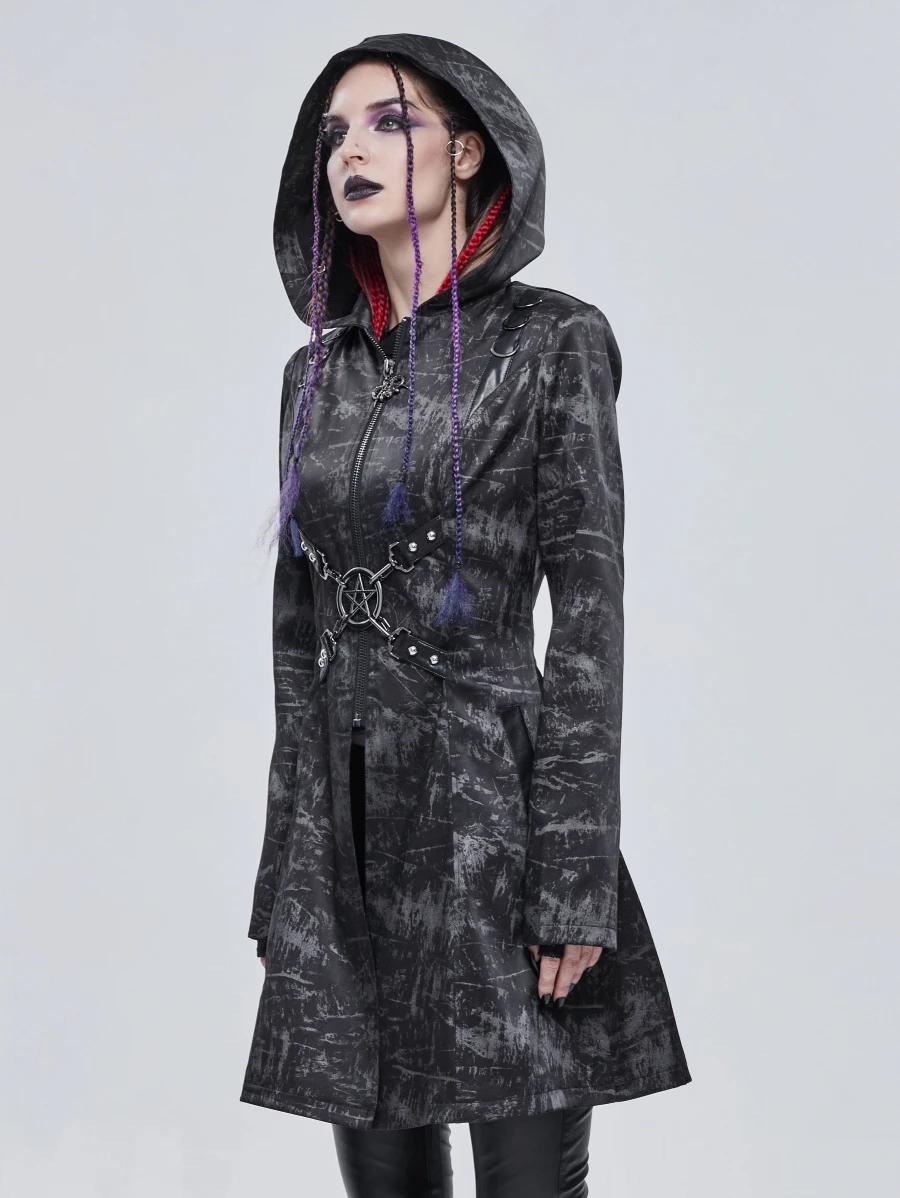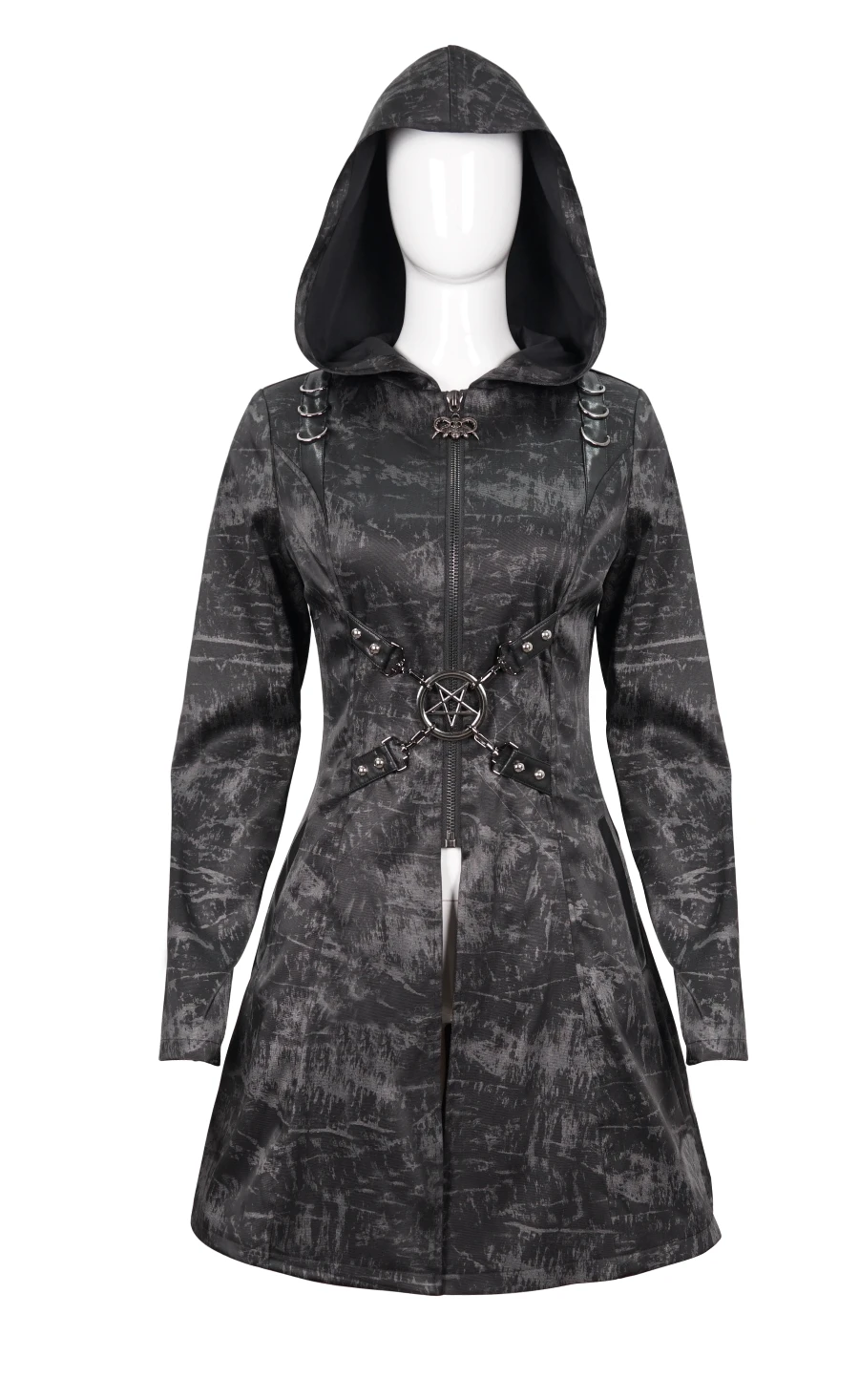 Gros pentagramme en métal relié par 4 sangles avec mousquetons montées sur bandes de simili cuir noir et décorées de rivets (vous pouvez ôter le pentagramme si vous le souhaitez)