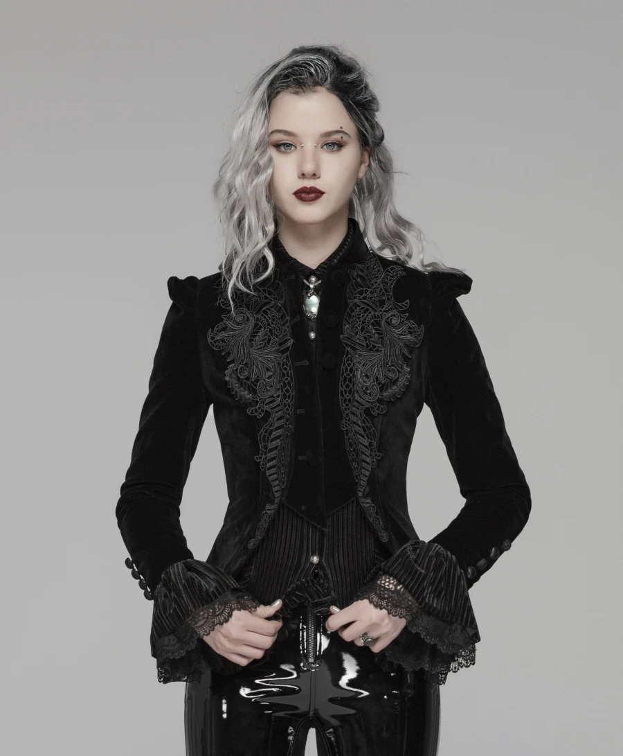 Très belle veste femme en velours noir de luxe par Punk Rave
