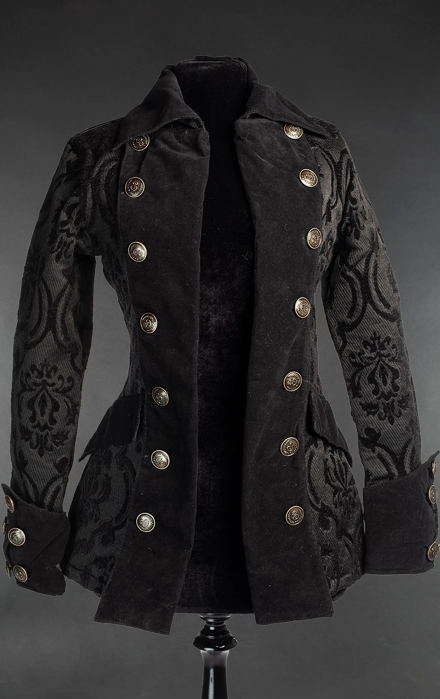 Superbe veste victorienne femme style pirate en tissu brocarde noir